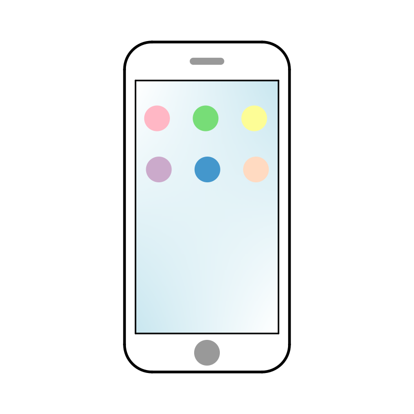 カラフルな丸いアイコンが並ぶスマホのフリーイラスト - ホーム画面デザイン