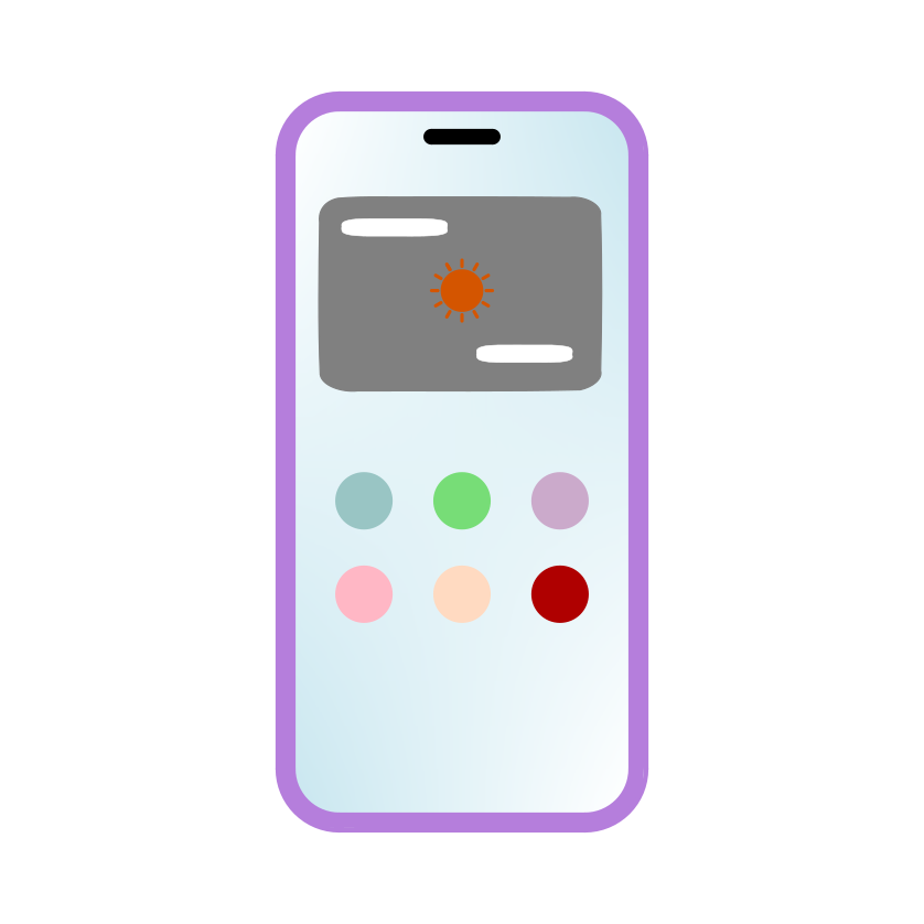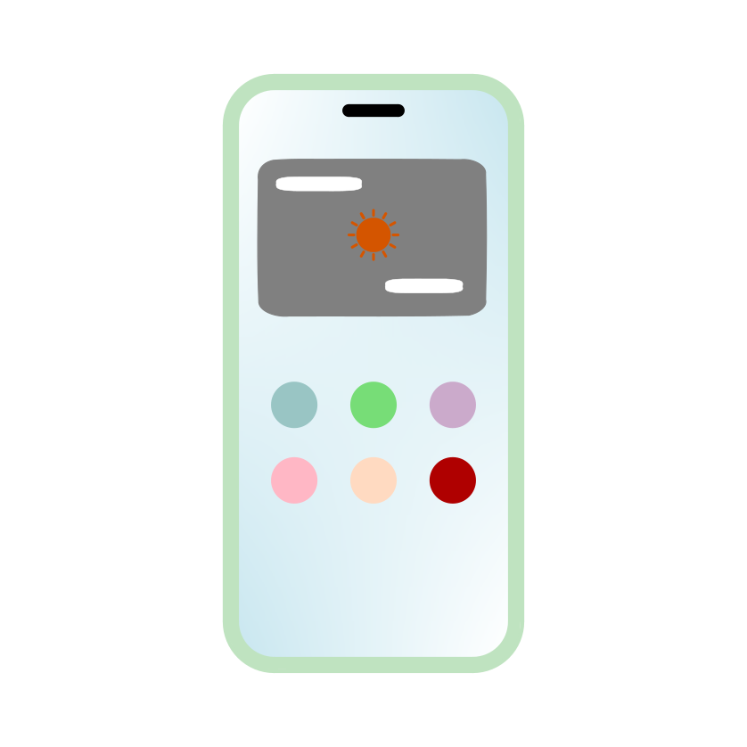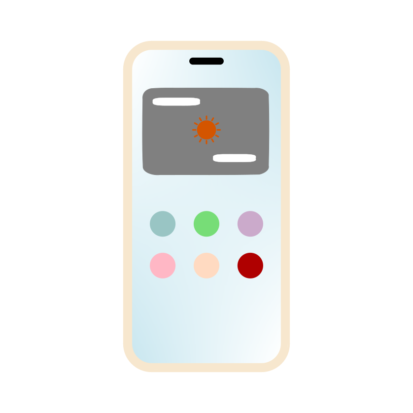 ウィジェットとカラフルなアイコンが表示されたスマホのイラスト - ホーム画面素材